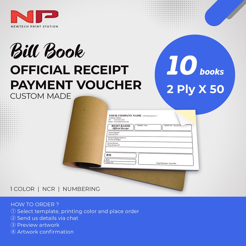 Pre Order Custom Printing Ncr Bill Book A3 29 1cm X 42cm Receipt Invoice Payment Voucher Order Chit Custom Made Cetak Buku Resit Eta 8 Days Lazada